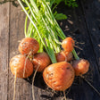 Paris Market' is a 19th century French heirloom. It produces bright orange, round 'baby' carrots only 2.5 - 4 cm in diameter which are tender and crunchy. It is an ideal carrot to grow in heavy soils, where bigger carrots fail and great in containers. It is a good choice in kids' gardens as it is so fast growing.