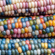 Glass Gem' was created by Carl Barnes, a part-Cherokee farmer living in Oklahoma who wanted to reconnect with his native-American heritage. It is a beautiful flint / popcorn variety producing cobs in a kaleidoscope of colours with translucent kernels that shine brilliantly like glass beads. It is a type of 'flint corn' which is grown not for eating off the cob, but for making popcorn, or grinding into cornflour. With 'flint corn', the corn is left on the plants to dry. The kernels will eventually begin to lose their shine and vibrancy and dry out. They are harvested only when the kernels are as hard as flint - which is where the name 'flint corn' comes from. Popcorn can be fun to grow in the garden for children, as it can be dried and used for tasty snacks. The leaves and stems are a good animal forage. Days to harvest: 60 - 100.