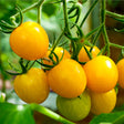 This is an old British heirloom with smooth, round, golf-ball sized, golden yellow fruit. The brilliant yellow colour is very appealing, the fruit is sweet, thin-skinned and juicy. A very prolific producer, that starts early and continues over a long period. An indeterminate (climbing) type so requires staking. Days to harvest: 75.