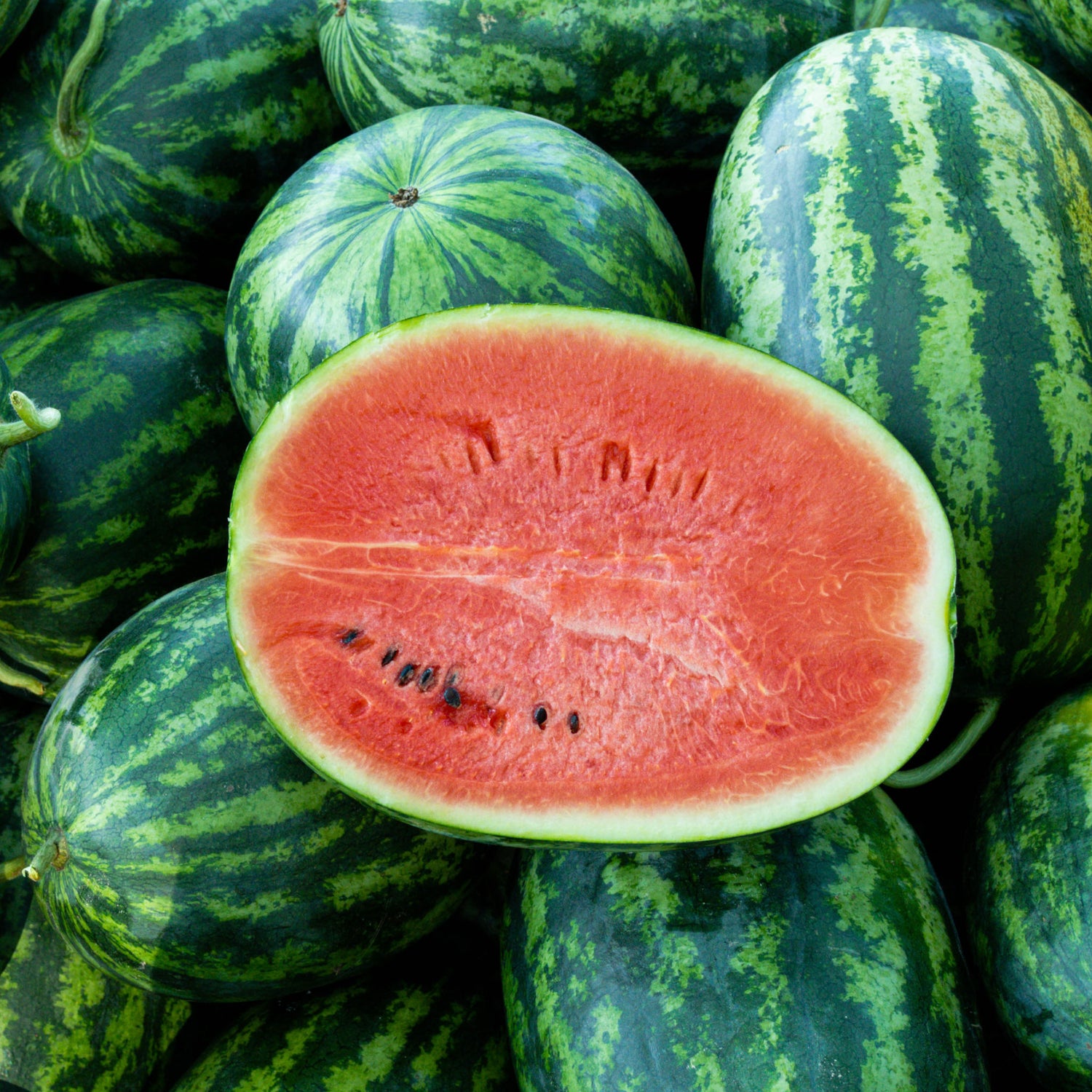 Bush Jubilee' is a great choice for gardeners who want to enjoy a juicy, sweet watermelon but have limited space. The compact vines only spread 1-2 metres. The oblong fruits weigh between 4-5kg with alternating yellow-green and dark green stripes. The red flesh is crisp and juicy with a high sugar content. The vines have some disease resistance and drought tolerance.